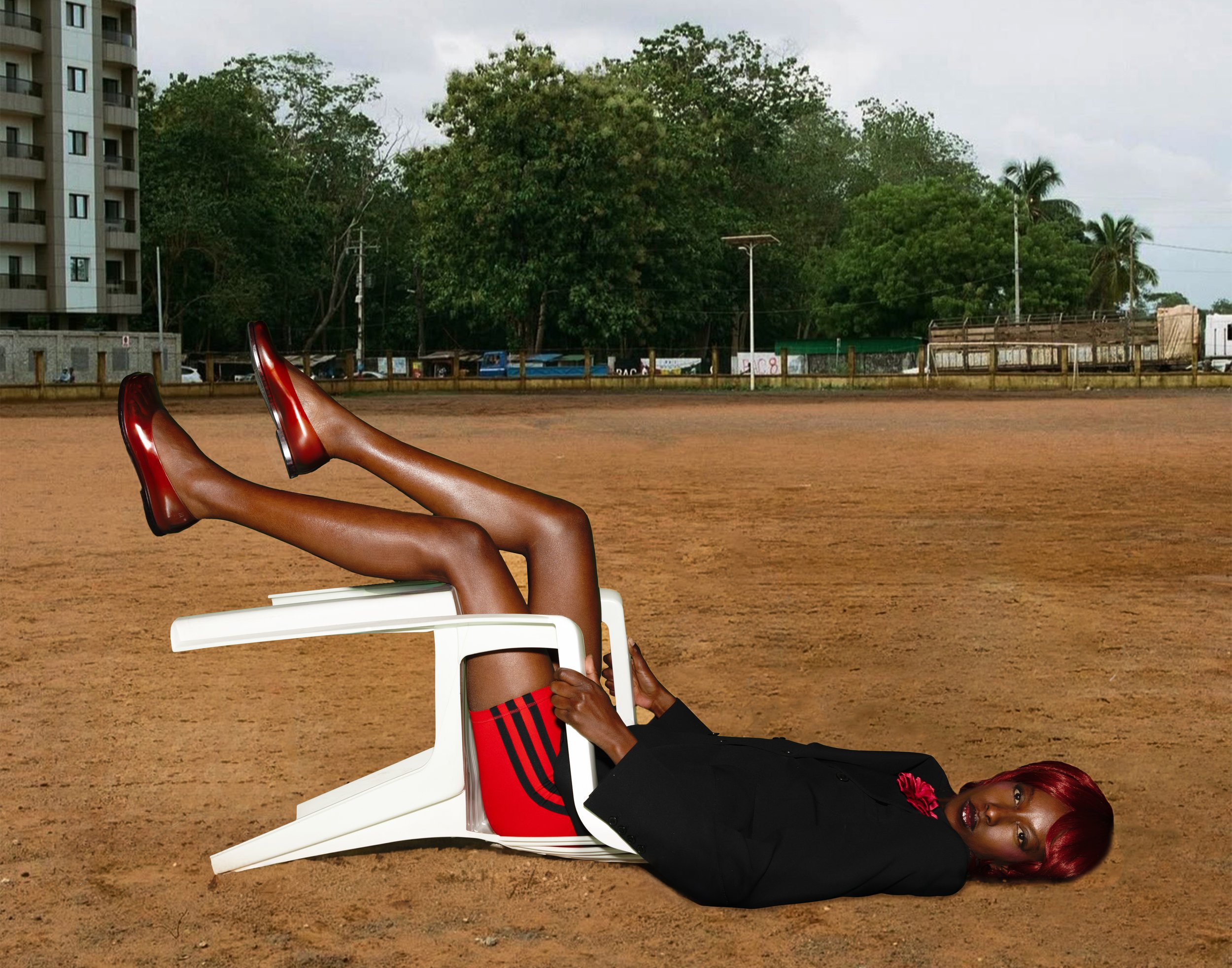 Shooting éditorial conçu comme un hommage à mon pays natal. Face à la mer où j’ai grandi, le bruit du ballon rythme encore les journées. En bas de chez moi, des jeunes jouent sans crampons ni baskets, seulement en léké, simples sandales de plastique qui deviennent, le temps d’un match, des chaussures de champions.